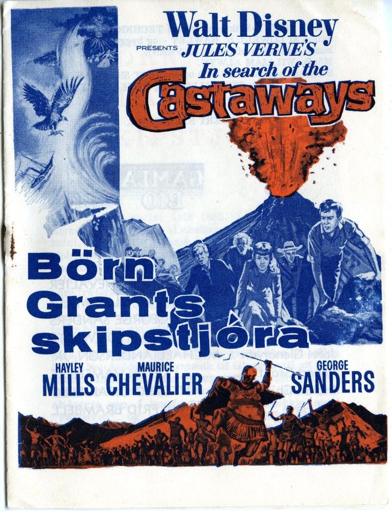 Kvikmyndaprógram fyrir kvikmyndina „Börn Grants Skipstjóra“ (In Search of the Castaways). Gamla Bíó. 8 blaðsíður. Í lit.