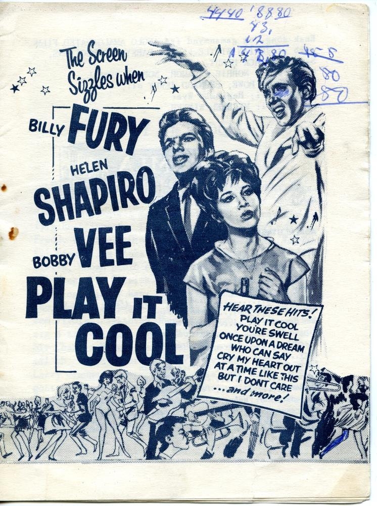 Kvikmyndaprógram fyrir kvikmyndina „Play it cool“. Gamla Bíó. 8 blaðsíður. Svart/hvítt.