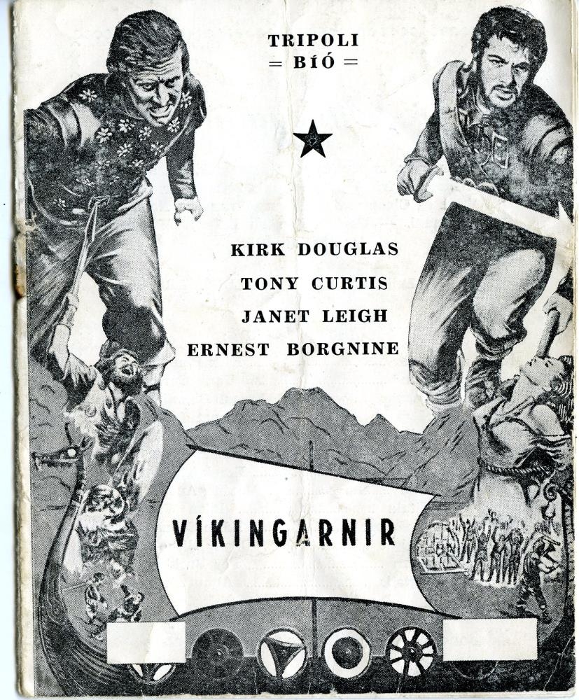 Kvikmyndaprógram fyrir kvikmyndina „Víkingarnir“. Tripoli Bíó. 12 bls . Svart/hvítt.
