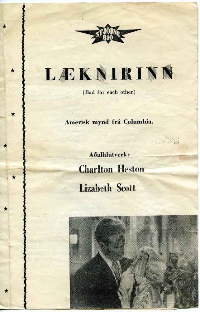 Kvikmyndaprógram fyrir kvikmyndina „Læknirinn“ (Bad for each other). Stjörnubíó. 4 bls (1 opna). Svart/hvítt.