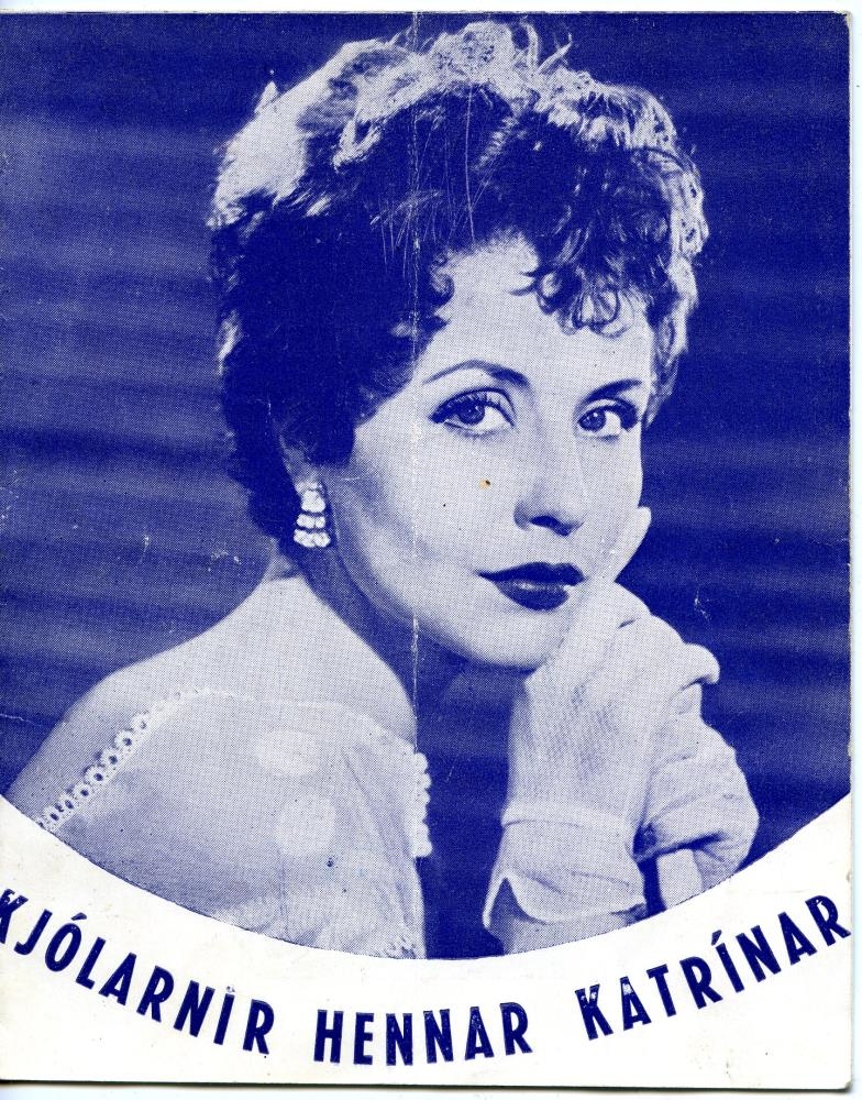 Kvikmyndaprógram fyrir kvikmyndina „Kjólarnir hennar Katrínar“ (De 7 Kleider der Katrin). Tripoli bíó. 8 bls í lit.