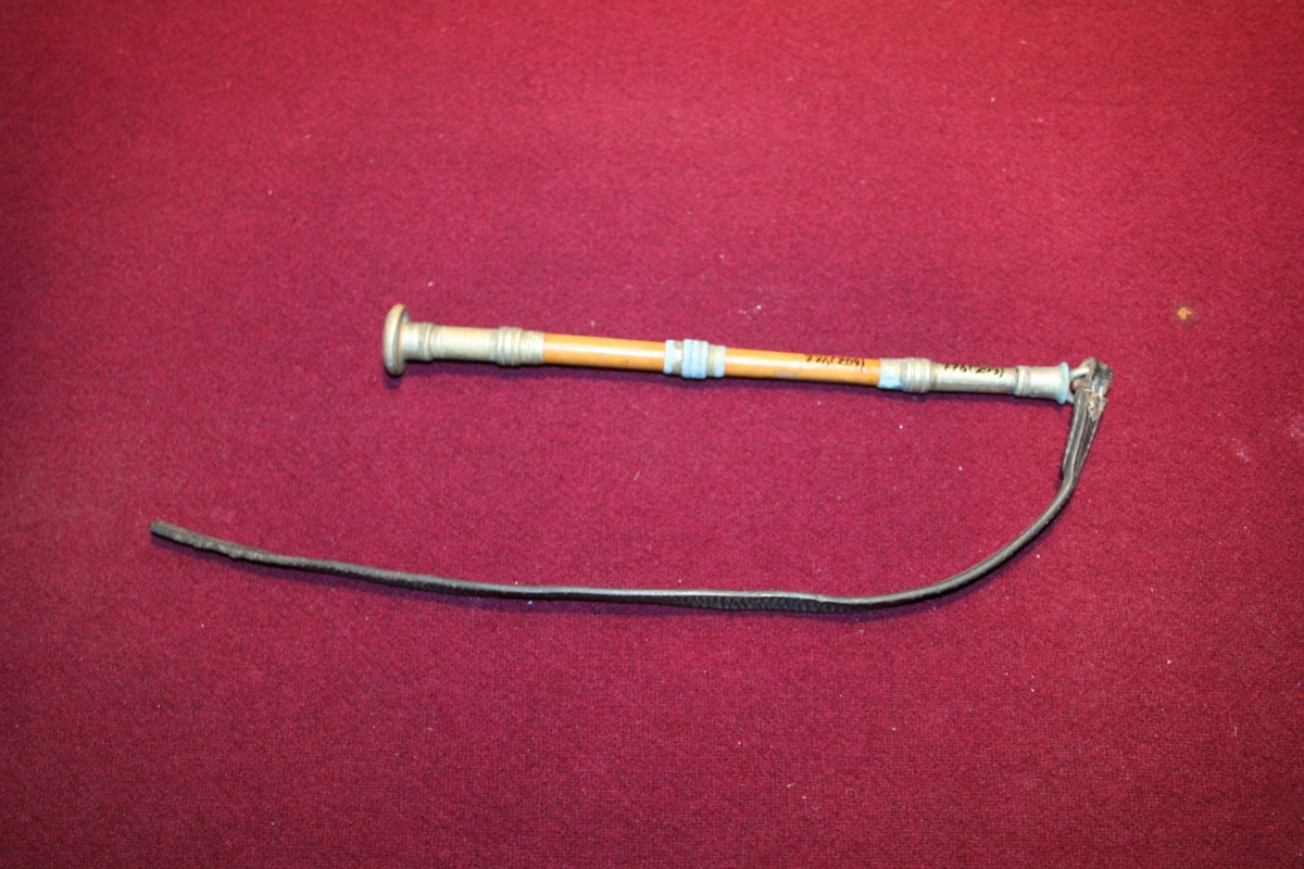 Svipa. Lengd: 25.5 cm. Skaft úr harðviði. Silfurhólkar á báðum endum og einn í miðjunni, grafið á húninn með skrifstöfum J.S.J.= Sigurlaug Jónsdóttir (móðir gefanda). leðuról 47 cm.