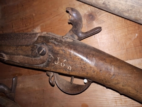 Byssa - Framan hlæða, hlauplengd 94 cm. Hlaupvídd 18 mm. Skeftislengd 78 cm. Fóðringar úr járni. Plata úr messing á hægri hlið á skefti. Í alskefti. Í nothæfu ástandi (1958), vantar þó aftursigti. Skorið í skefti "Fallbjorninn" og Jón. Ennfremur J.K. = Jón Kristjánsson Fremstafelli.