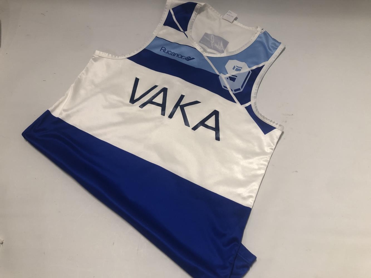 Körfuboltatreyja. Blá, ljósblá og hvít. Framleiðandi Rucanor.