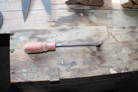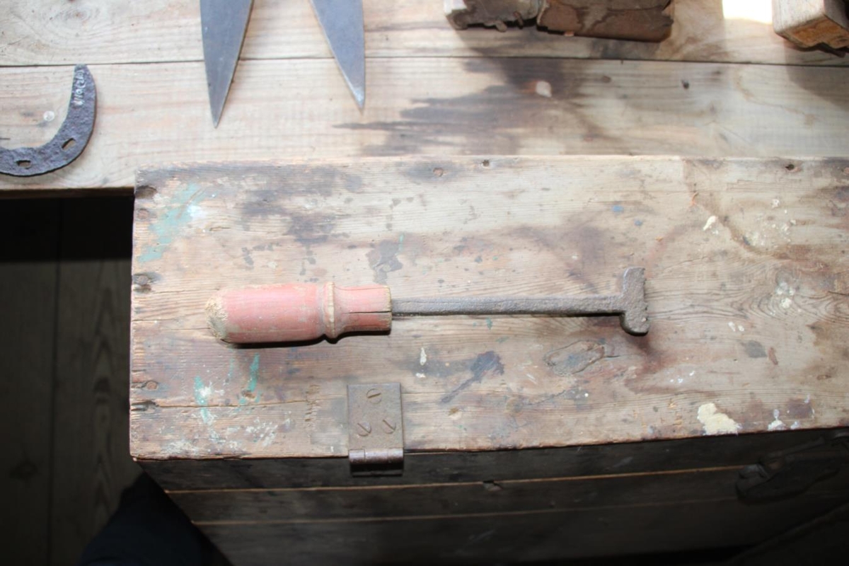 Brennijárn. Hausinn 3.7 cm. Skaft rennt úr furu. Lengd alls 25 cm. Brennimark SF 3H. Úr dánarbúi K.J.