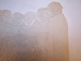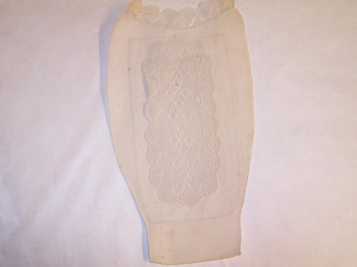 Hvítt brjóst með heklaðri blúndu. Hluti af peysufötum úr eigu Kristbjargar Jónatansdóttur, Reykjum, Fnjóskadal.