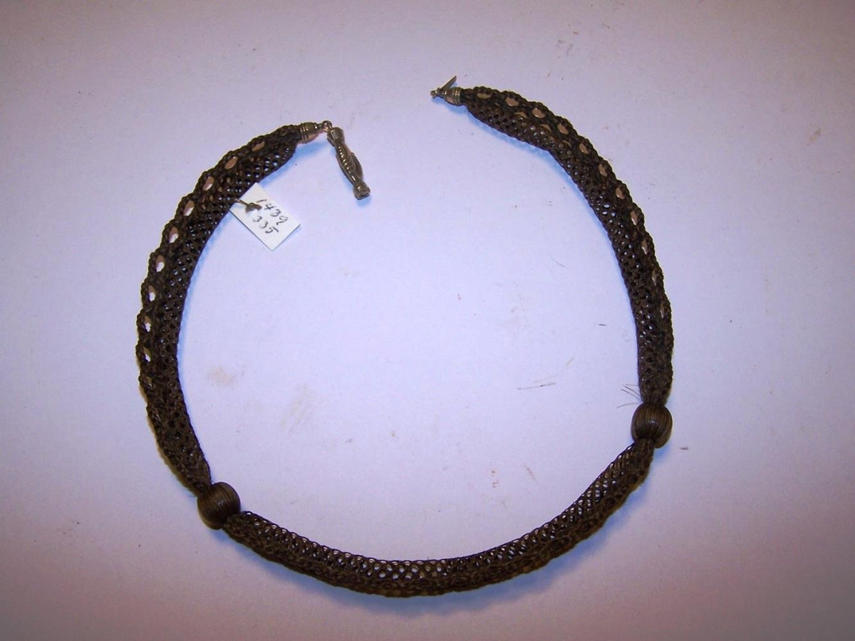 Hálsfesti úr kvenhári Kristveigar Jónsdóttur konu Magnúsar Einarssonar organista á Húsavík og síðar Akureyri.