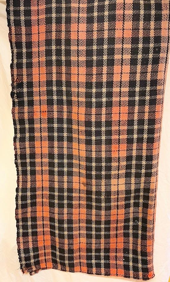 Rúmábreiða frá 1901, svart, rautt og gráköflótt, með vaðmálsvígindum. Stafirnir H.G saumaðir í. Band tætt og unnið af Jakobínu Rakel Sigurjónsdóttur á Hafursstöðum, en ábreiðan ofin af Kristjáni Jónssyni bónda í Hafrafellstungu frá 1899-1947. Stafirnir H.G ( Helgi Gunnlaugsson, sonur Jakobínu) eru saumaðir í teppið.