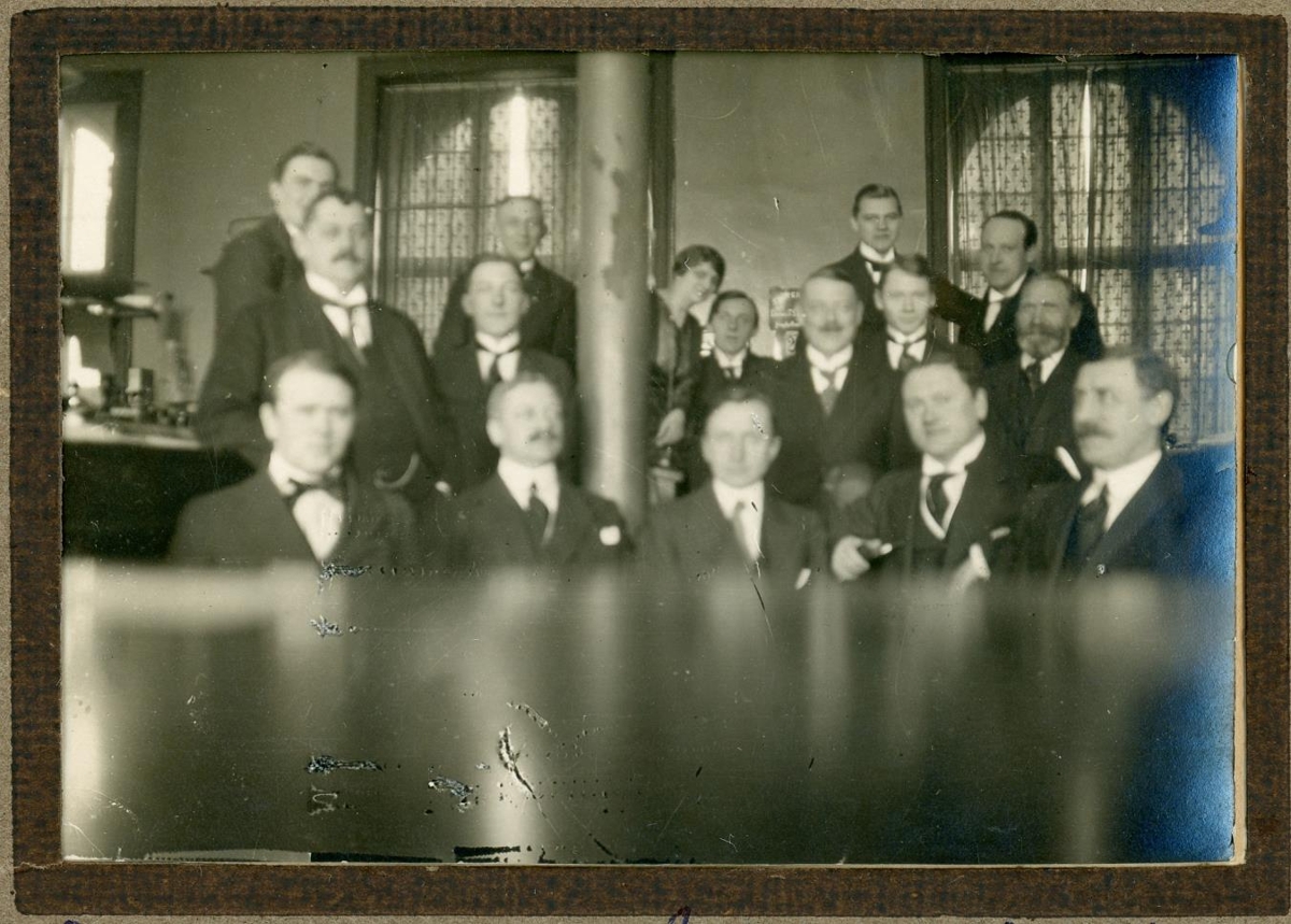 Undir myndinni er skrifað: Starfsmenn Íslandsbanka. Haraldur Jóhannessen efst fyrir miðju.