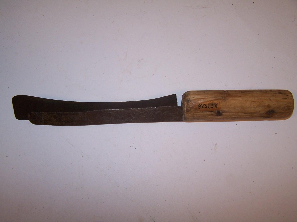 í sláturtíð til þess að aflífa búfé. Tréskaft 10.5 cm langt og tanginn