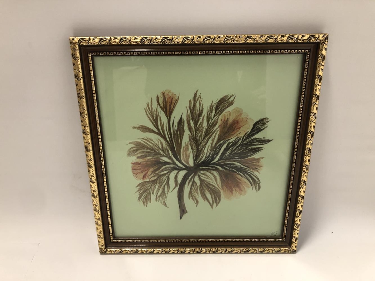 Ragnheiður Sigurðardóttir frá Steinsbæ gaf mynd eftir Ingibjörgu Jónasdóttir, innrammaður þari. Aftan á mynd er letrað "Úr fjörunni á Eyrarbakka 1977".