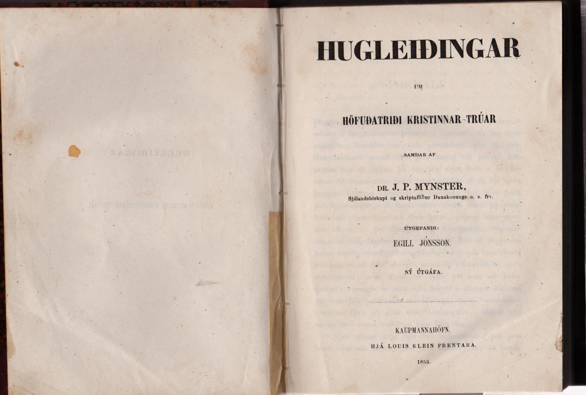 Hugleiðingar um höfuðatriði kristinnar trúar / samdar af J.P. Mynster