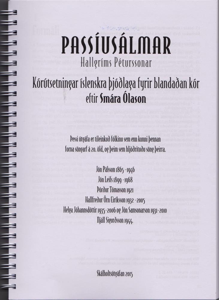 Passíusálmar Hallgríms Péturssonar : kórútsetningar íslenskra þjóðlaga fyrir blandaðan kór / eftir Smára Ólason