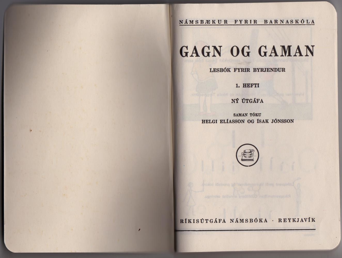 Gagn og gaman : lesbók fyrir byrjendur 1. hefti / saman tóku Helgi Elíasson og Ísak Jónsson ; teikningar eftir Tryggva Magnússon og Þórdísi Tryggvadóttur.