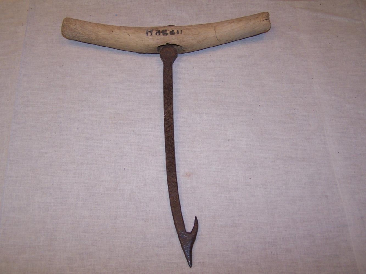 Heynál. Nafnið "Hagan" brennimerkt á skaftið.