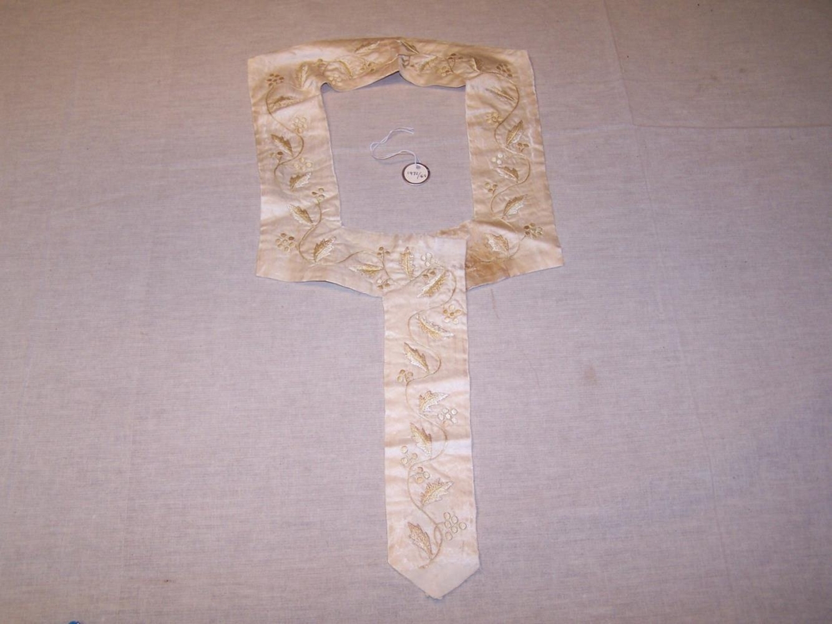 Hálsskreyti af brúðarkirtli. Munur unninn af Kristínu Þuríði Gísladóttur í Reynihlíð. Gef. börn hennar. Fyrri þeirra hönd afhent af Helgu Valborgu Pétursdóttur. f. 26.6.1936. Geymt í skattholi í Þverárstofu.