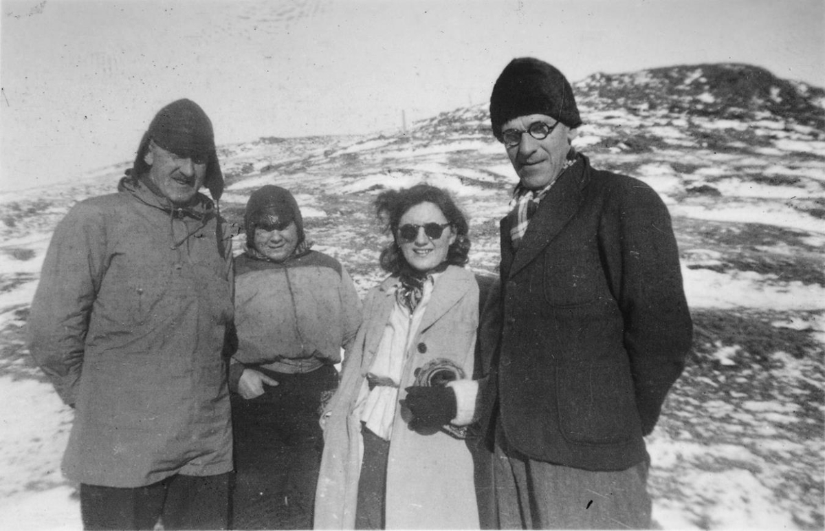 við myndina er skrifað: Halldór, Þóra, ég og Jóhannes úr Kötlum