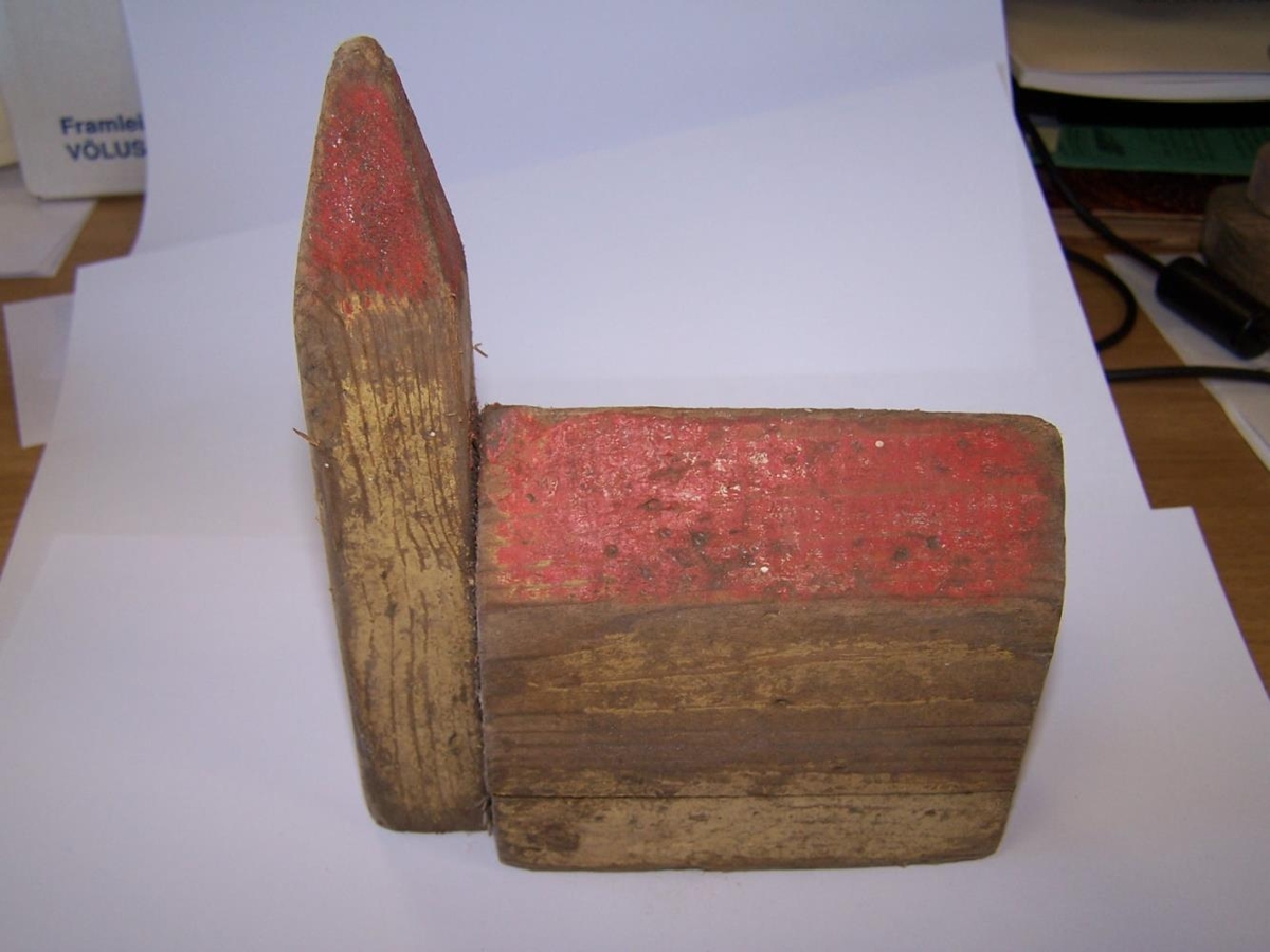 Lítið líkan af kirkju úr við. Var leikfang. Kirkjan er gerð úr þremur viðarkubbum. Einn fyrir turninn og tveir fyrir kirkjuhúsið. Turninn er 2,5 cm langur, 2,3 cm breiður og 16 cm að hæð, þar af mynda 4 efstu cm þakið. Kirkjuhúsið er gert úr tveimur kubbum og er það 10 cm langt, 4,5 cm breitt og 9,5 cm hátt, þar af efstu 2,5 cm þakið. Kirkjan er gul að lit með rauðu þaki.