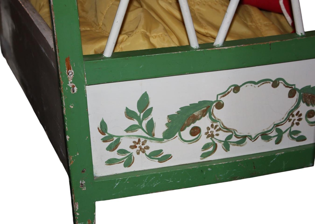 Barnarúm og fataskápur, smíðað árið 1951 af Ólafi Vilhjálmssyni (1926-1985) og líklega myndskreytt af Lárusi Árnasyni (1910-1986) málarameistara.Ólafur smíðaði húsgögnin fyrir dóttur sína Emilíu. Um 1962 voru húsgögnin flutt að Suðurgötu 64 á Akranesi til Kristbjargar systur Ólafs. Voru þau síðan í nær óslitinni notkun af börnum hennar og barnabörnum til ársins 2003