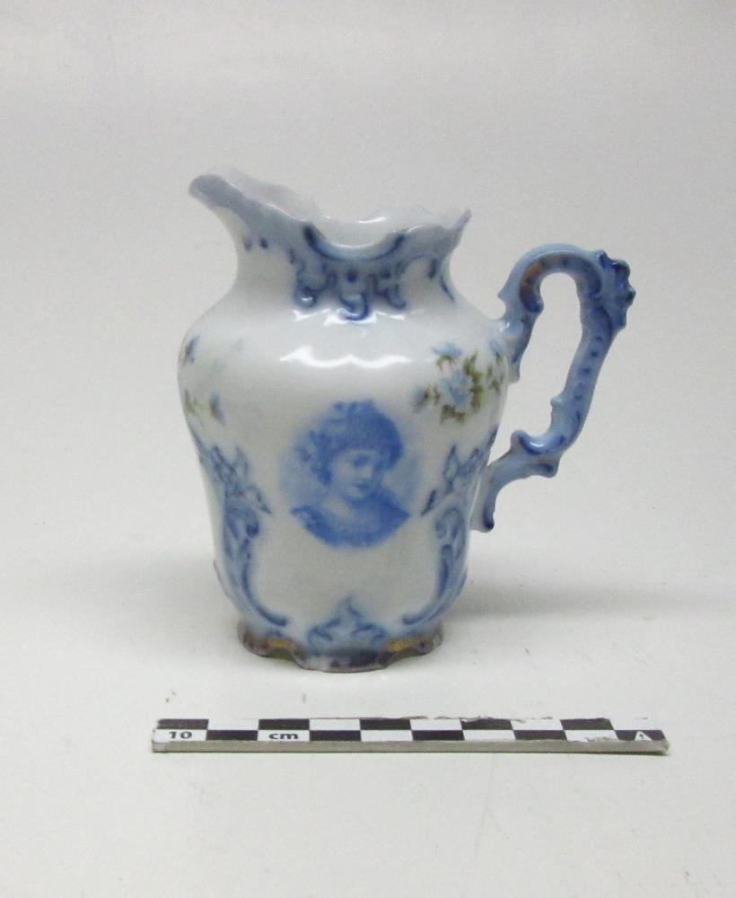 blátt með kvenmynd. - Gjöf frá Jóni A. Hjaltalín til Sigríðar ( ekki brúðargjöf).