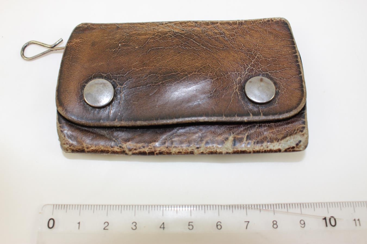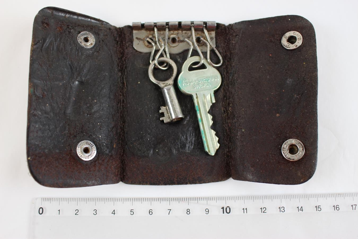 Lyklaveski úr leðri sem að kemur úr dánarbúi Hallgríms Ottóssonar. Í veskinu eru tveir lyklar.