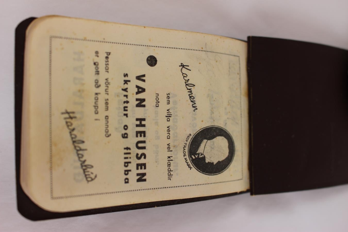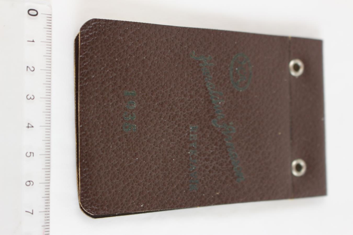 Lítil brún vasabók með dagatali, merkisdögum og ýmsum upplýsingum. Bókin er gerð af Haraldi Árnasyni, sem átti Haraldarbúð, árið 1935. Kallar hann bókina Haraldarbókin. Hún kemur úr dánarbúi Hallgríms Ottóssonar og er merkt honum að innan, einngi hefur hann skrifað eitthvað til minnis inní bókina.