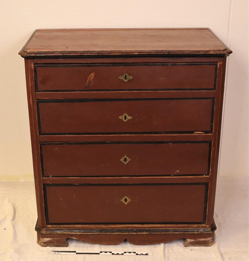 Kommóða úr eigu Sigríðar Ólafsdóttur, Múla. Hún er smíðuð af syni hennar, Ólafi Mars Jónssyni smið á Borðeyri árið 1912.