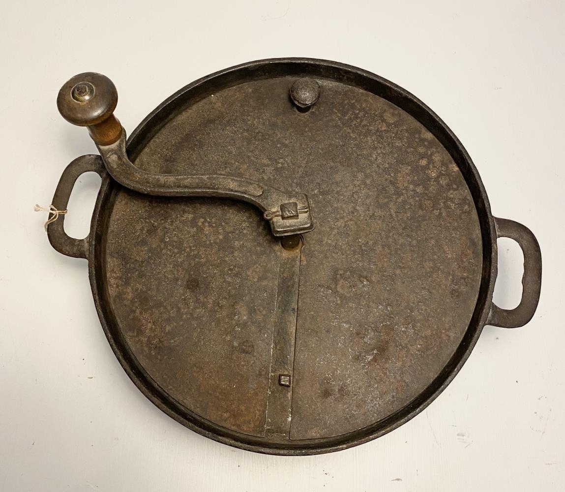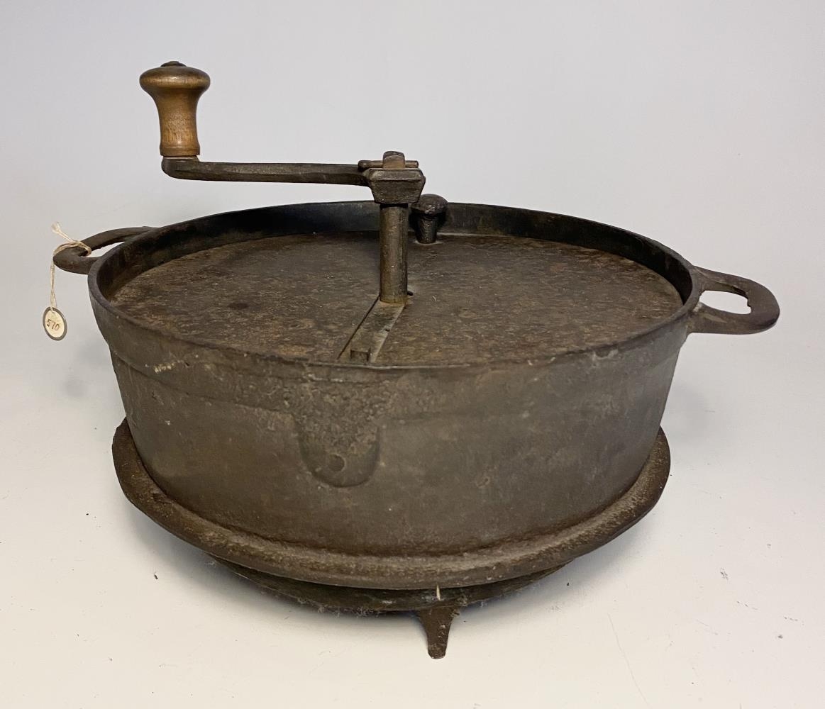 Stór hlóðapottur úr járni á 3 fótum. Hann er 49 cm. í þvermál að ofan og nær 28 cm. frá jörðu. Fæturnir eru 5 cm. á hæð og botninn er ávalur. Eyrun eru eins og hálf sporaskja 10 cm. á breidd og 4 cm á hæð, með litlum götum í.