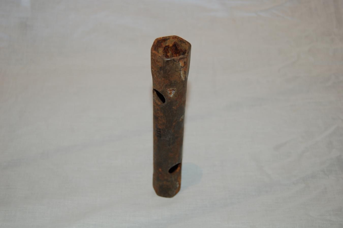 Fastur lykill. Komið úr Bútæknihúsi Landbúnaðarháskóla Íslands, en skólinn gaf safninu mikið af gripum tengdum viðhaldi og viðgerðum á búvélum á árunum 2003-2014.