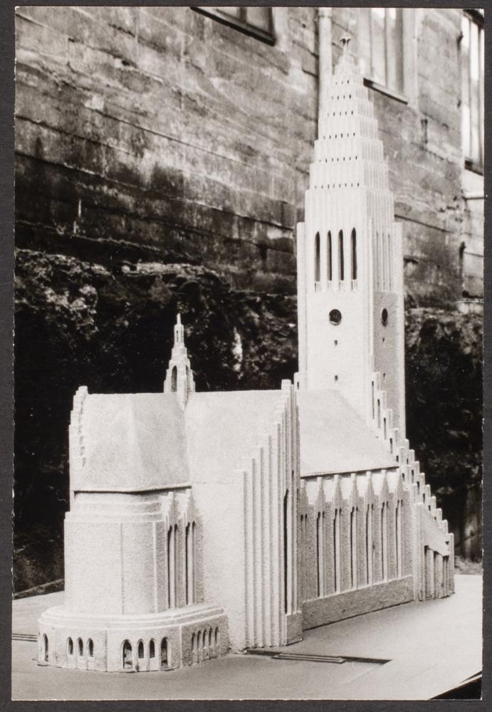 Byggingar Guðjóns Samúelssonar húsameistara. Hugmynd Guðjóns að Hallgrímskirkju í Reykjavík. Þessari hugmynd var hafnað. Myndir a-k.