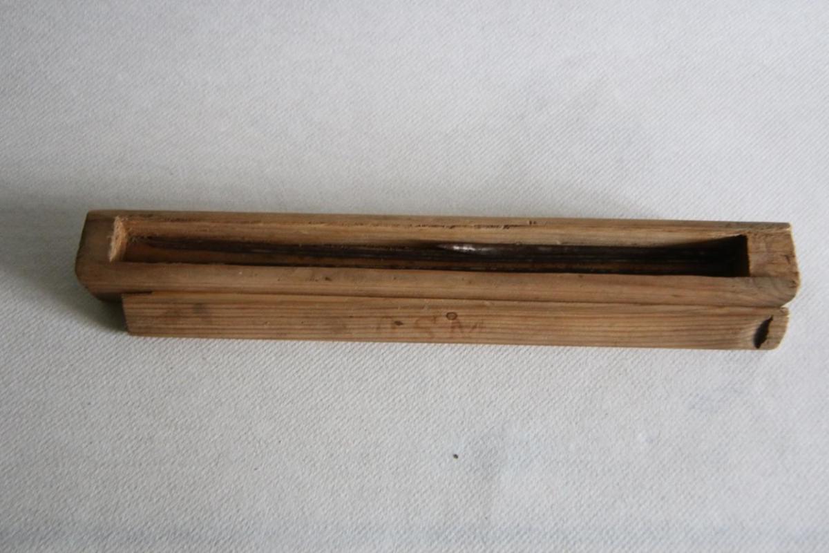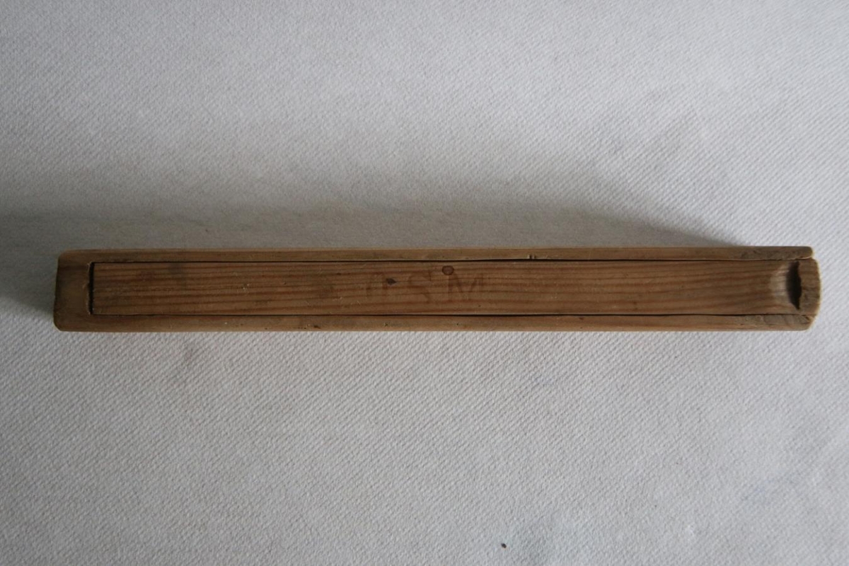 Prjónastokkur smíðaður af Oddnýju Salínu Methúsalemsdóttur, Bustarfelli. Á loki stendur OSM og eru það upphafsstafir hennar.