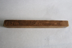 Smíðaður af Halldóri Methúsalemssyni ungum handa móður hans, Elínu Ólafsdóttur, húsfreyju á Bustarfelli. Ýmislegt hefur verið rist í stokkinn; á loki eru upphafsstafir Halldórs og neðan á honum er nafn Elínar tvírist, hugsanlega með nokkurra ára millibili.