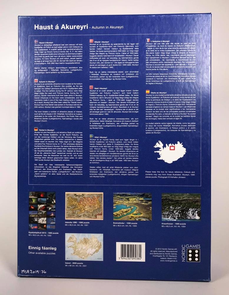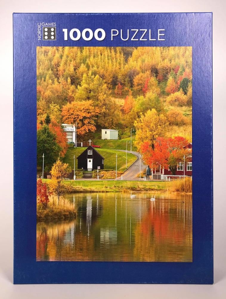 Púsluspil 1000 bita púsl. Framleiðandi NordicGames. Heiti : Haust á Akureyri. Art.-Nr. 1005. 68x48,5 cm.