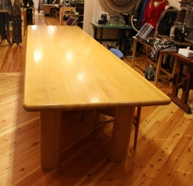 Fundarborðið er úr ljósri eik með fimm sverum fótum og þykkri borðplötu. Borðið var lengi fundarborð stjórnar ÚA. Skammstöfunin Ó.Á er fyrir Ólaf Ágústsson sem rak húsgagnaverkstæði á Akureyri um áratugaskeið.