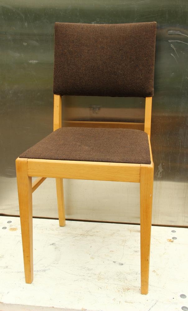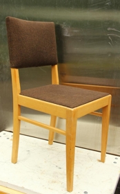 Stóllinn er úr ljósri eik með brúnu ullaráklæði frá Ullarverksmiðjunni Gefjuni á Akureyri. Áletrun undir setu: Húsgagnavinnustofa Ó.Á & Co 1258. Hér er um að ræða stól frá fundarborði ÚA sem er númer 2003-812 í Sarpi.