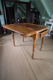 Brúnlakkað borð úr vönduðum viði. Úr búi Methúsalems Einarssonar og Elínar Ólafsdóttur, Bustarfelli. Það stóð áður ætíð í baðstofunni og var þar borðað við það og börnin lærðu lexíurnar við það.