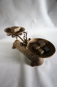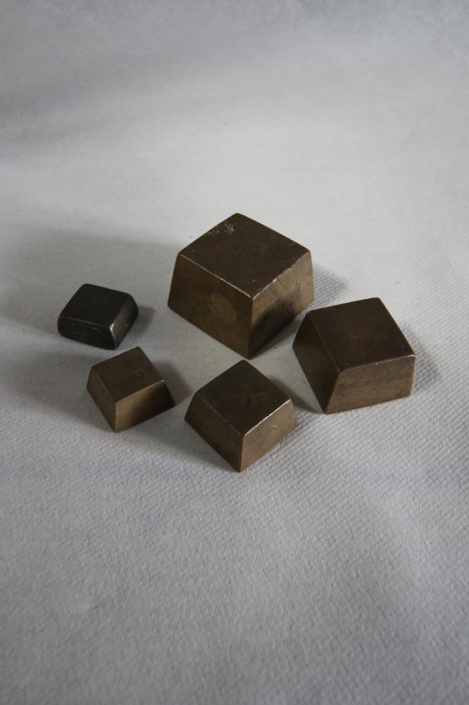 Skálavog. Henni fylgja fimm trapisulaga metskálalóð. Á botni þeirra er innsigli Kristjáns V. Danakonungs, ártalið 1831 auk þyngdarmerkingar. Úr eigu Elínar Ólafsdóttur, Bustarfelli.