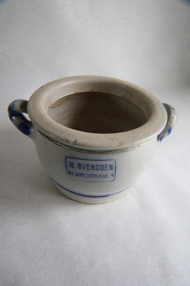 Leirkrús, með bláu mynstri. Var saltkar Þórunnar Einarsdóttur á Hraunfelli. Var gjöf til hennar frá Elísabetu Vilhjálmsdóttur, móður Ingibjargar Albertsdóttur.