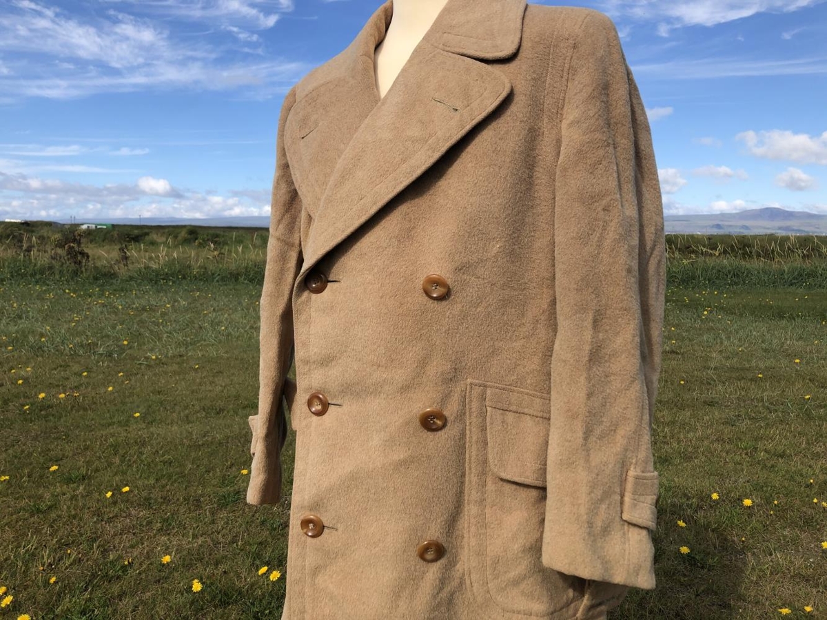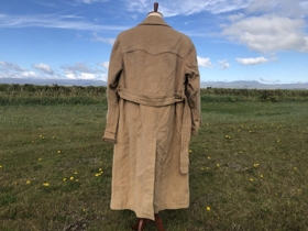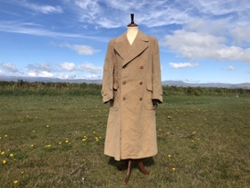 Frakki Þórðar Jasonarsonar frá Vorsabæ. Ljósbrúnn frakki, fóðraður. Framleiðandi: Fröjds Stockholm.