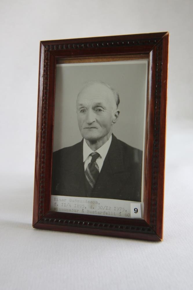 Ljósmynd af Einar Guðmundssyni. Ekki stendur hvar eða af hverjum hún er tekin, en aftan á myndinni hefur verið skrifað: "Einar Guðmundsson, 68 ára, 1963".