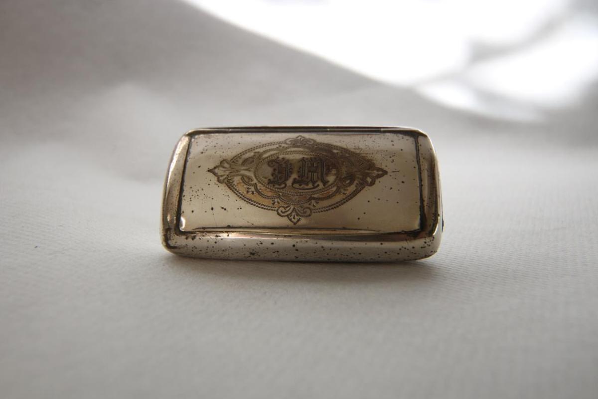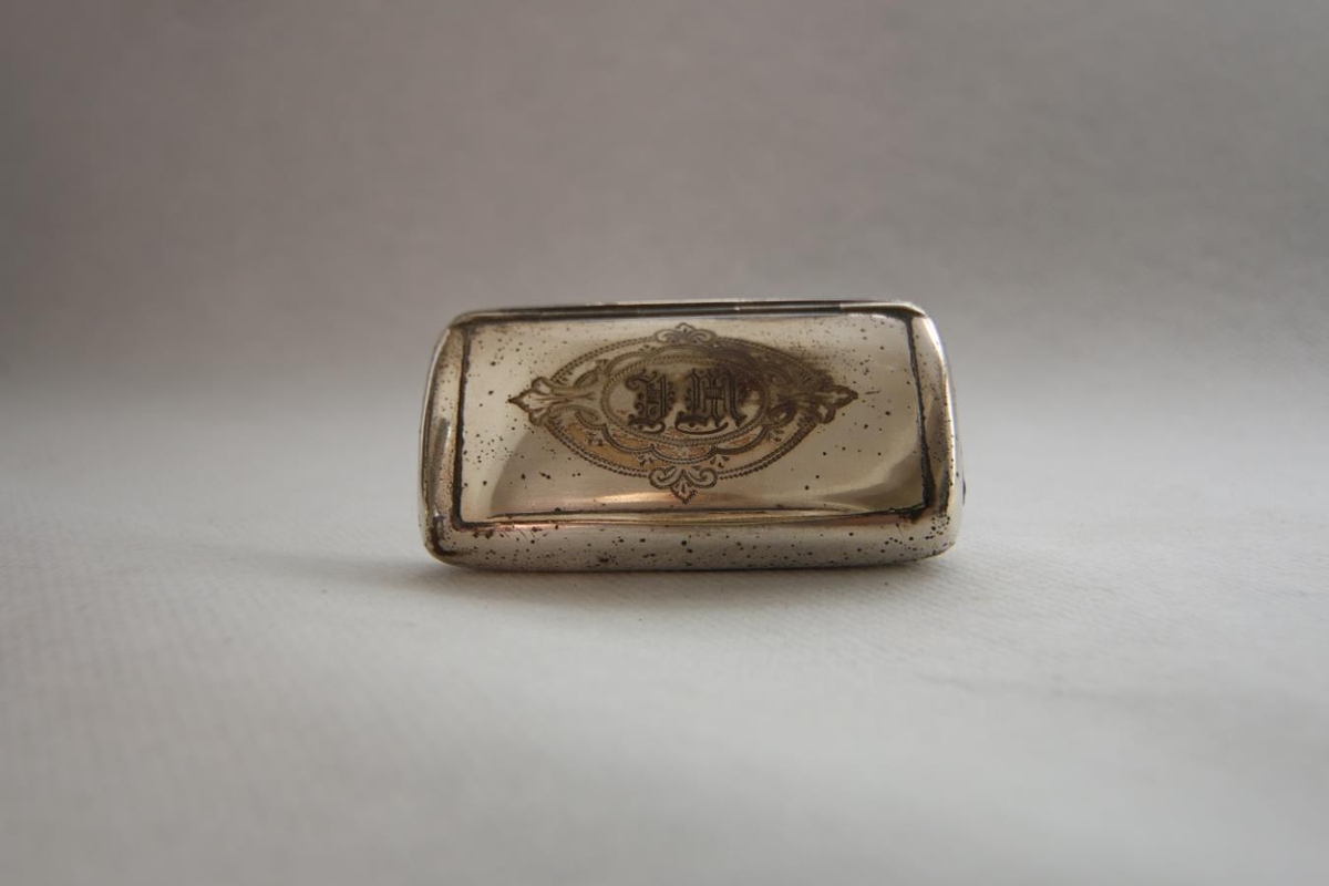 Ein margra neftóbaksdósa, sem Halldór safnaði meðal Vestur-Íslendinga og sendi Methúsalem, bróður sínum, í safnið nokkrum árum áður en hann lést. Stafirnir "DM" grafnir í lokið með höfðaletri, en ekki er vitað hver átti.