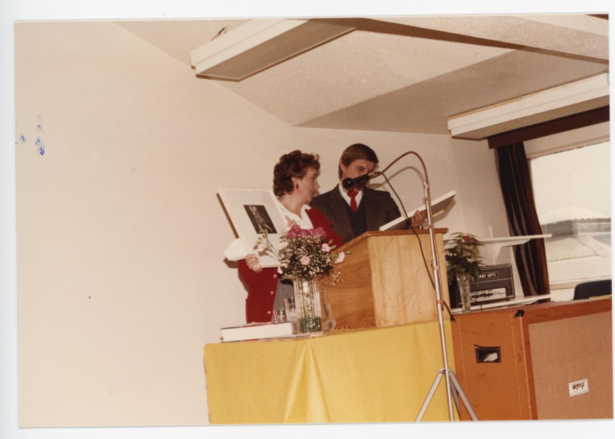 Þrúður Kristjánsdóttir skólastjóri Búðardalsskóla og Guðjón Sigurðsson skólastjóri Laugaskóla á fjörtíu ára afmælishátíð Laugaskóla.