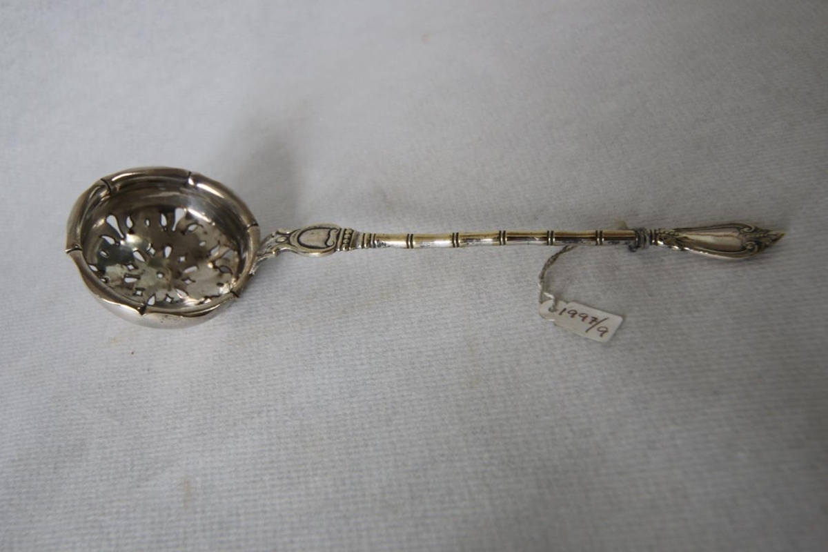 Sykurskeið, notuð til að sigta sykur. Úr búi Guðrúnar Óladóttur og Helga Gíslasonar, Hrappsstöðum. Var þá orðin gömul.