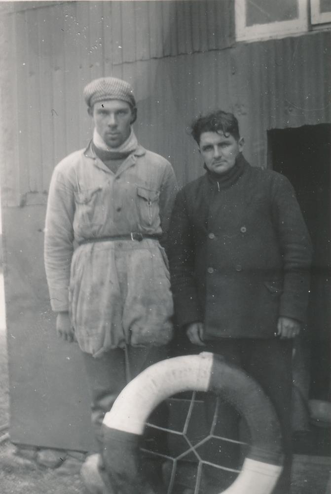 Mynd af Kristjáni Steinari Þórólfssyni og Eugène Gonidec (1907-1997), stýrimanni. Kristján, þá 18 ára, bjargaði Gonidec úr öldurótinu eftir að franska skipið, Pourquoi-Pas ?, strandaði á skerinu Hnokka nálægt Straumfirði. Gonidec var sá eini sem lifði af.