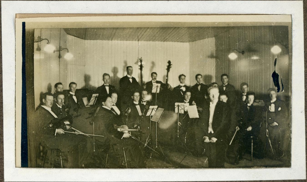 „Myndin er af Þórarni Guðmundssyni og Hljómsveit Reykjavíkur á sviðinu í Iðnó.“ (PBB 2024)