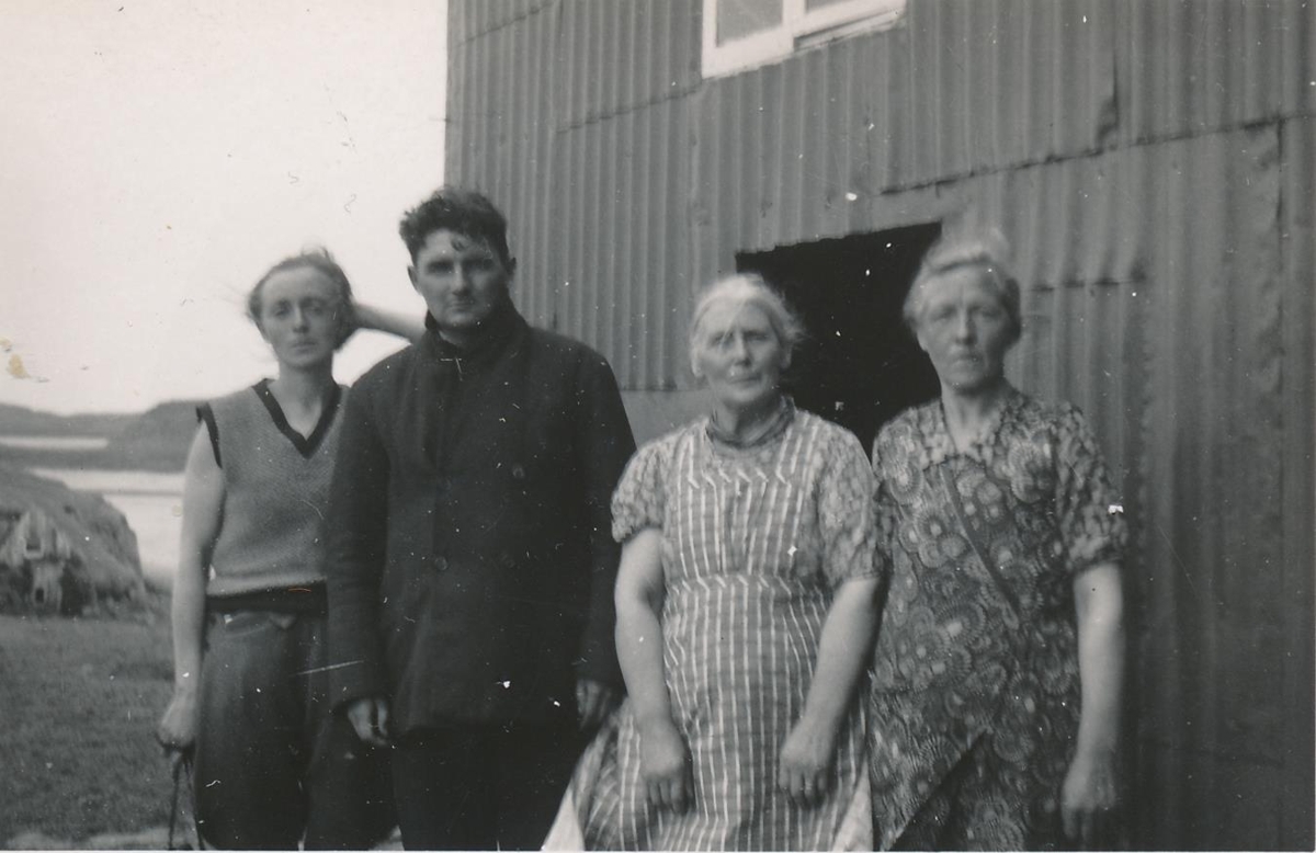 Mynd af Ingibjörgu Friðgeirsdóttur, Hofstöðum, Eugène Gonidec (1907-1997), stýrimanni, Þórdísi Jónasdóttir, húsmóður í Straumfirði, og Sigríði Þorsteinsdóttur, vinnukonu í Straumfirði. Mynd er tekin í Straumfirði eftir björgun Gonidec úr sjónum eftir að franska rannsóknarskipið Pourquoi-Pas? strandaði nálægt, á skerinu Hnokka. Gonidec var sá eini sem lifði af. Ingibjörg var með þeim fyrstu á slysstað eftir að kallað var á hjálp.