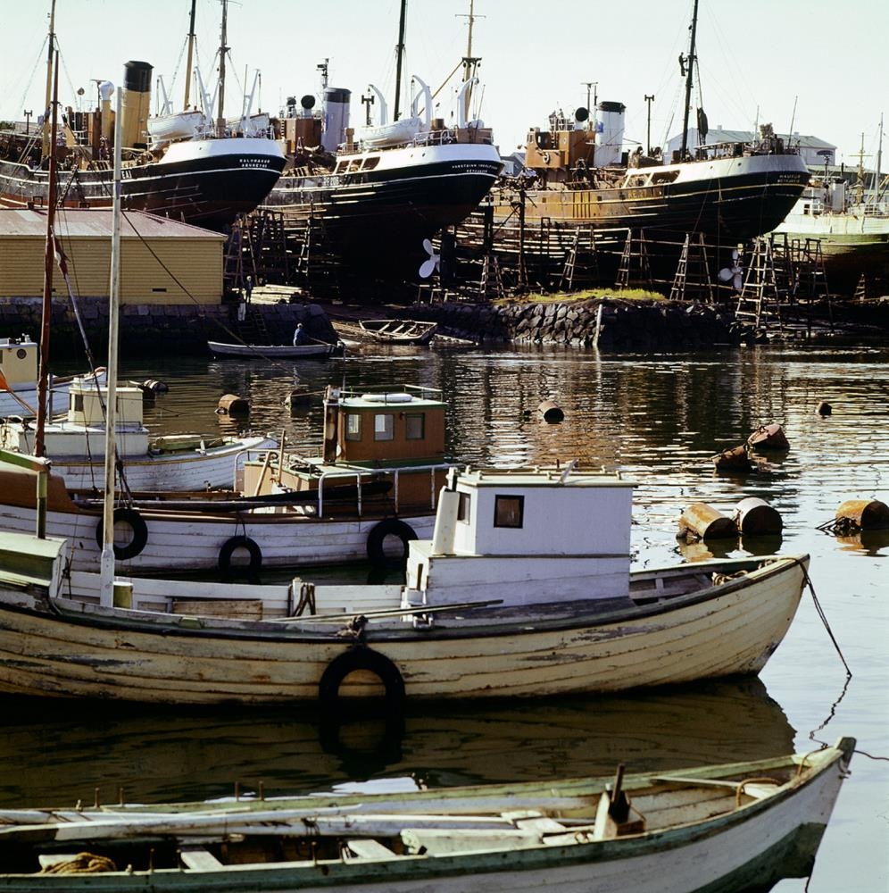 Bátar í Reykjavíkurhöfn og skip í slippi. Haukur RE 27 yst t.h.