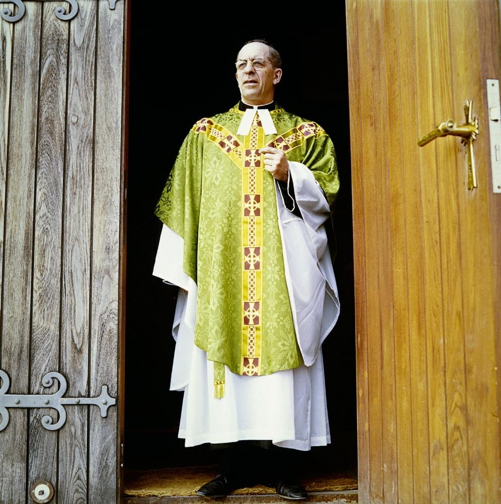 Séra Sigurður Pálsson í dyrum Selfosskirkju.