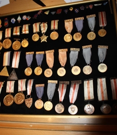 Verðlaunapeningar í sundi frá 1951 til 1963, sem Sigurður Sigurðsson (1939-) frá Akranesi vann í hinum ýmsu sundkeppnum. Einnig eru nokkur barmmerki.