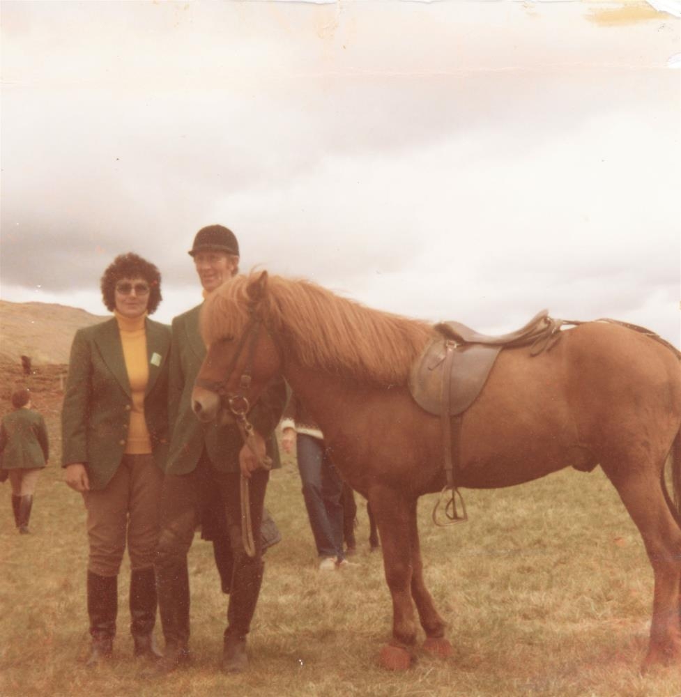 Ólöf Sigurðardóttir (Lóa) og Eyjólfur Jónsson (Eyfi) á Sámsstöðum með Stjarna á Nesodda.